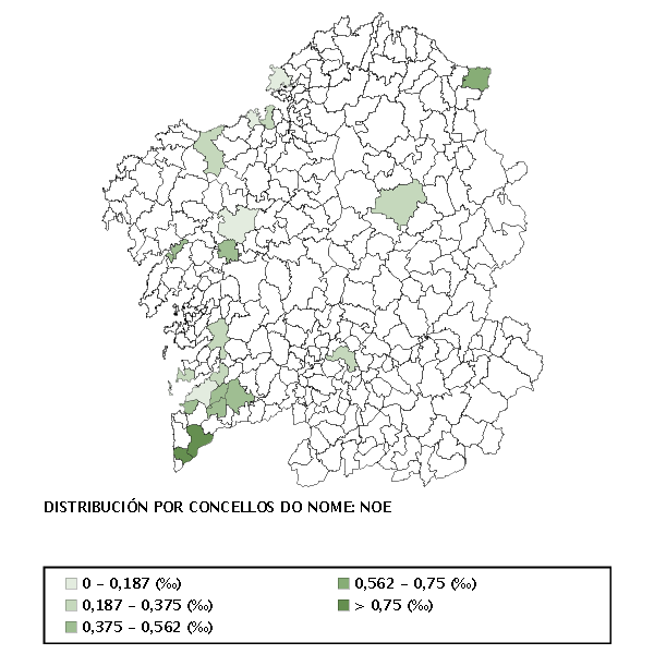 Só se mostran os datos con máis de cinco ocorrencias por concello.