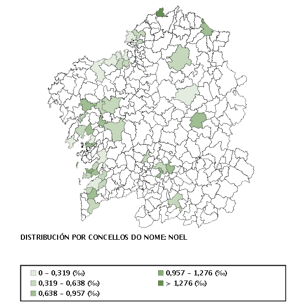 Só se mostran os datos con máis de cinco ocorrencias por concello.