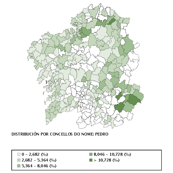 En Galicia este nome tivo moito uso xa desde os tempos medievais, pois levárono santos como Pedro de Mezonzo (930-1003); poderosos señores como o conde Pedro Fróilaz de Traba (século XII), o mariscal Pedro Pardo de Cela ou Pedro Álvarez de Soutomaior ‘Pedro Madruga’, conde de Camiña (os dous do século XV); trobadores, segreis e poetas do século XIII en lingua galega como Pero D’Ambroa, Pero Meogo ou Pero da Ponte. Na Idade Moderna, o pontevedrés Pedro Sarmiento de Gamboa (1532-1592) foi un importante navegante e descubridor, autor do máis detallado recoñecemento do estreito de Magalhães da súa época (1579-1580).