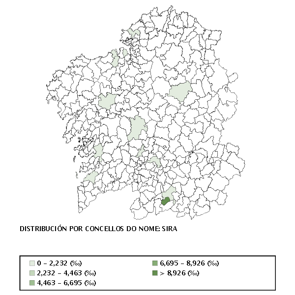 Só se mostran os datos con máis de cinco ocorrencias por concello.