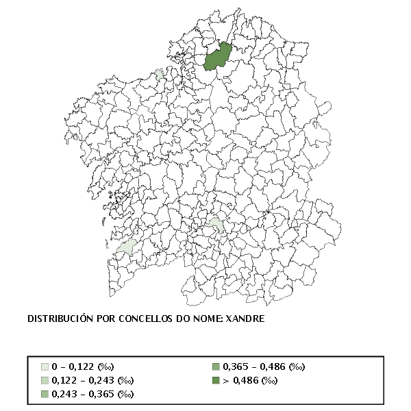 En paralelo coa recente expansión polo mundo do hipocorístico italiano Sandra, produciuse en Galicia idéntico proceso con este hipocorístico de Alexandra. Hoxe xa é tamén nome independente e creou a forma masculina Xandre.