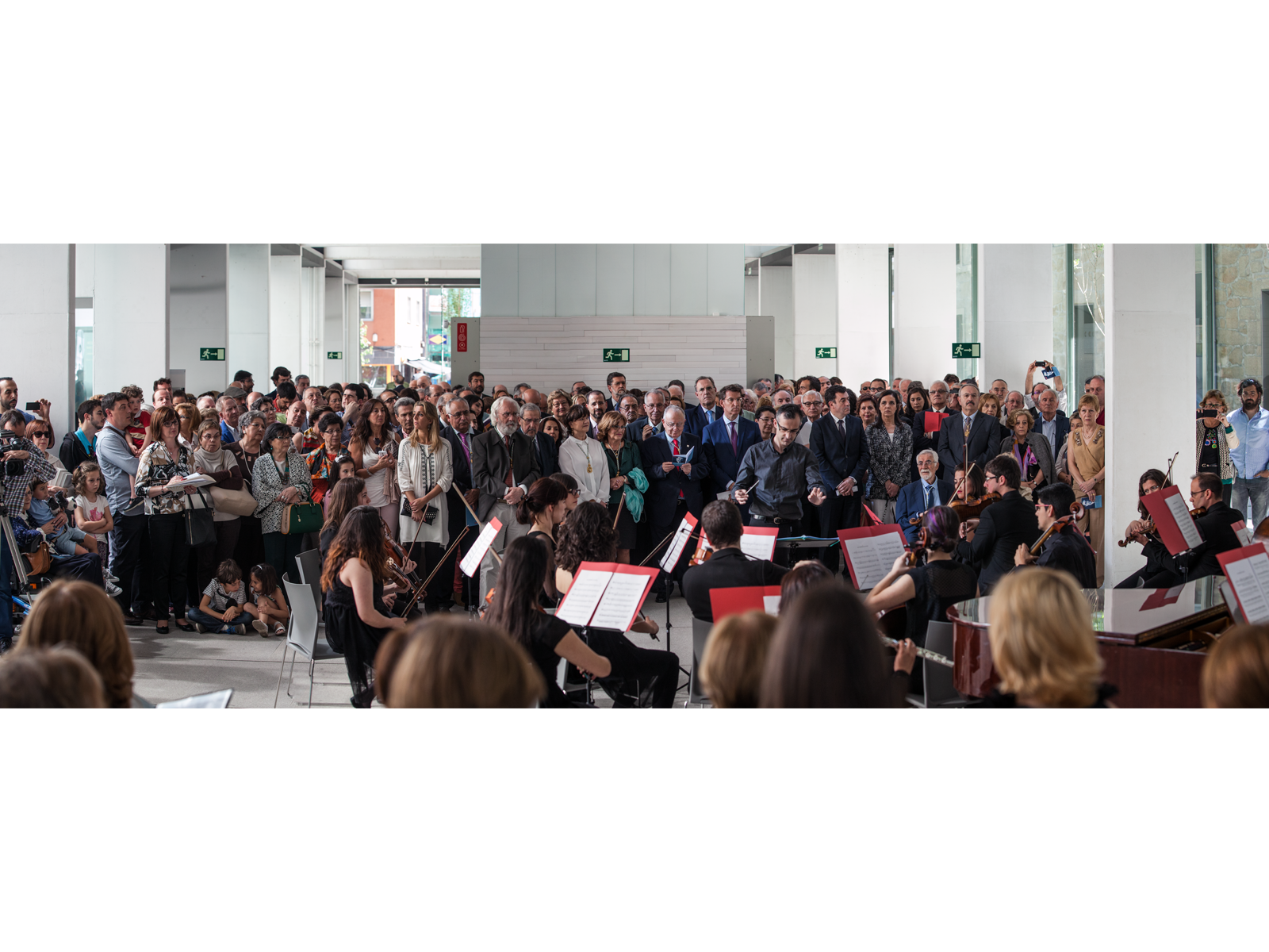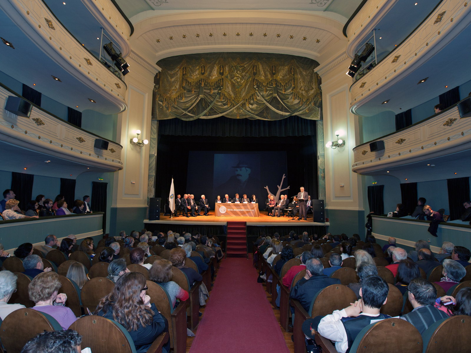 2015 Xosé Filgueira Valverde. Peche da sesión plenaria extraordinaria da Real Academia Galega no Museo de Pontevedra a cargo a Sociedad Coral Polifónica de Pontevedra acompañada pola Orquestra Filharmónica Cidade de Pontevedra que interpretaron a Cantiga 100 das Cantigas de Santa María e o himno Galego