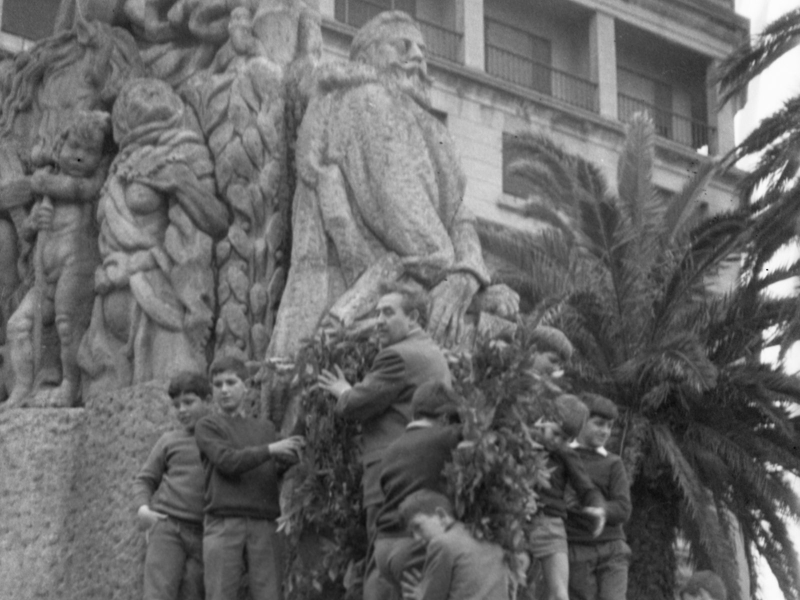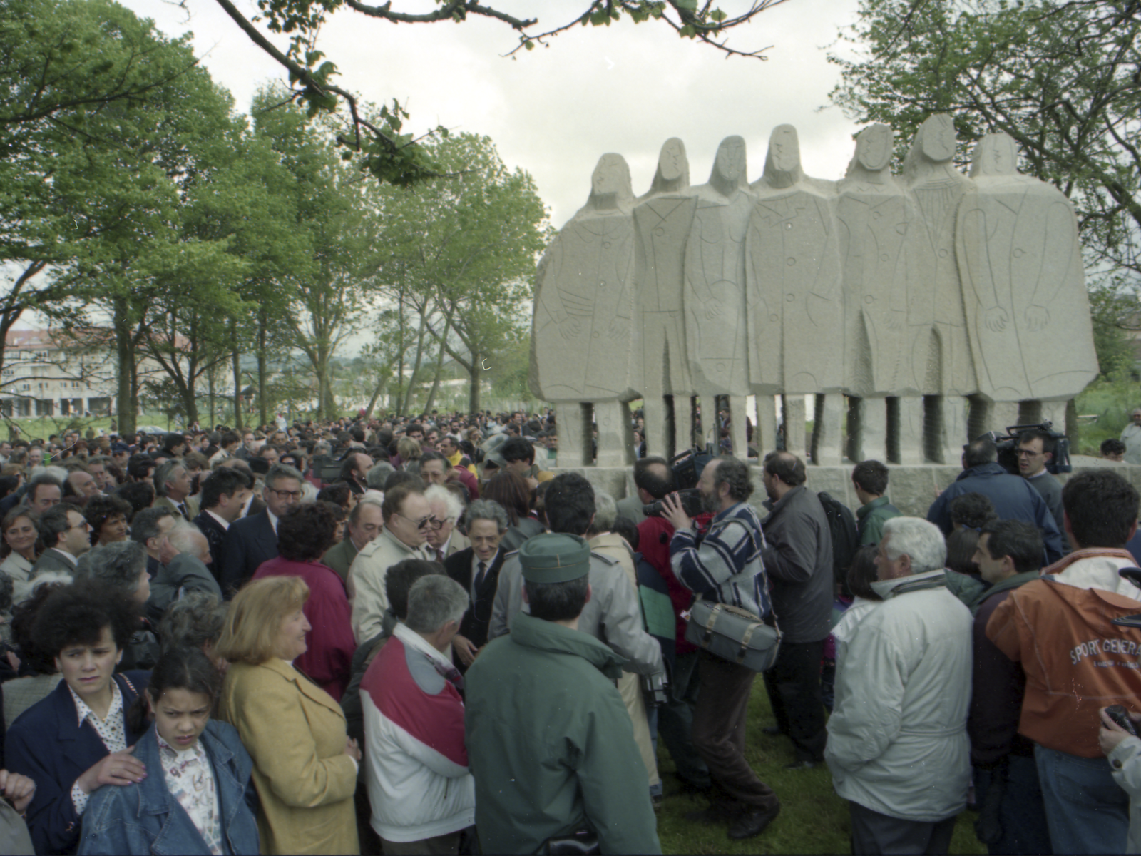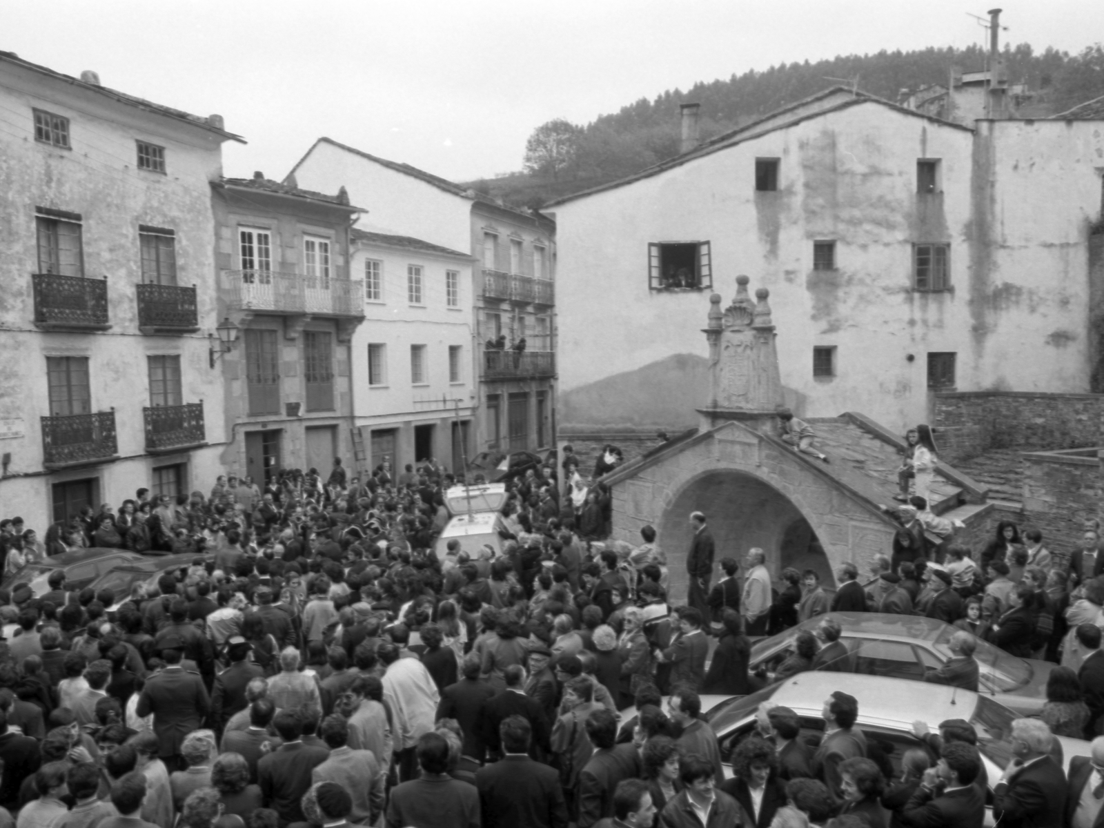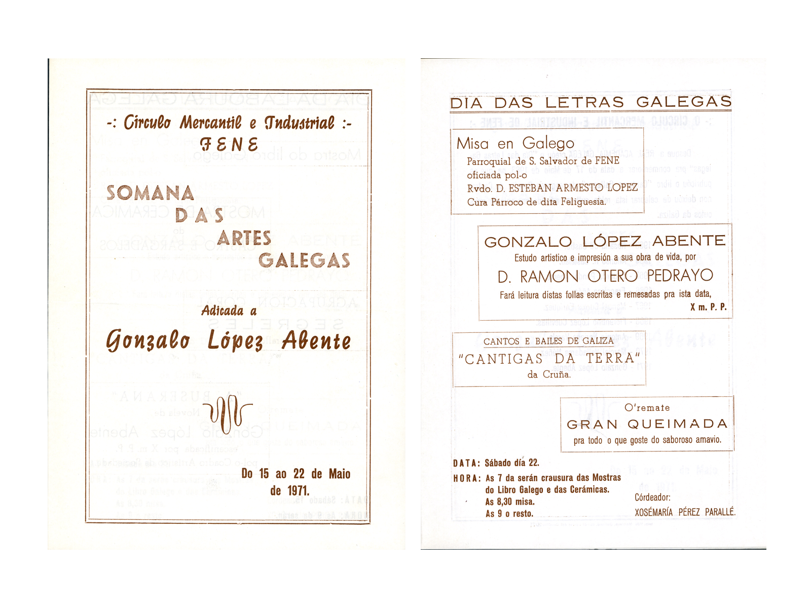 1966 Francisco Añón. Inauguración do monumento en memoria de Francisco Añón, en Outes, o 17 de maio de 1966. Entre os asistentes, na primeira fila, Leandro Carré, Ramón Otero Pedrayo, Francisco Serrano Castilla, Sebastián Martínez-Risco, Puerta Henche (alcalde de Outes), Francisco Vales Villamarín, Fermín Bouza-Brey, Enrique Chao Espina. Detrás, entre outros, Antonio Meijide Pardo, Juan Naya, Julio Rodríguez Yordi e José Luís Bugallal