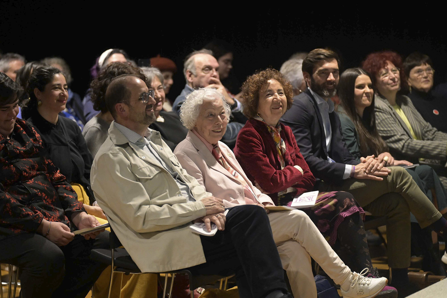 A “insubordinada potencia emancipada da poesía de María Xosé Queizán”, en palabras da coordinadora do volume, a académica Ana Romaní, queda ben reflectida nos versos que ao longo da tarde foron recitando Rexina Vega, Marga do Val, Manuel Forcadela, Andrea Nunes, Elvira Ribeiro, Pepe Cáccamo, María Reimóndez, Camiño Noia, Míriam Ferradáns, Xavier Baixeiras, Fina Casalderrey, Marilar Aleixandre e a propia Romaní. As convidadas e convidados leron tamén os seus pequenos comentarios que se reproducen igualmente no volume co que foi agasallado o público. Textos de recoñecemento a unha creadora que “trae a experiencia das mulleres para o centro da trama”, indica a académica Margarita Ledo, encargada da gabanza, na que foi trazando un retrato de Queizán a través de momentos vitais compartidos. “Debémosche o converter a palabra silenciada das mulleres nunha Festa. A reivindicación do noso dereito á felicidade, á alegría, na túa escrita sen límites”, agradécelle á homenaxeada Marilar Aleixandre noutro dos textos recollidos na publicación.