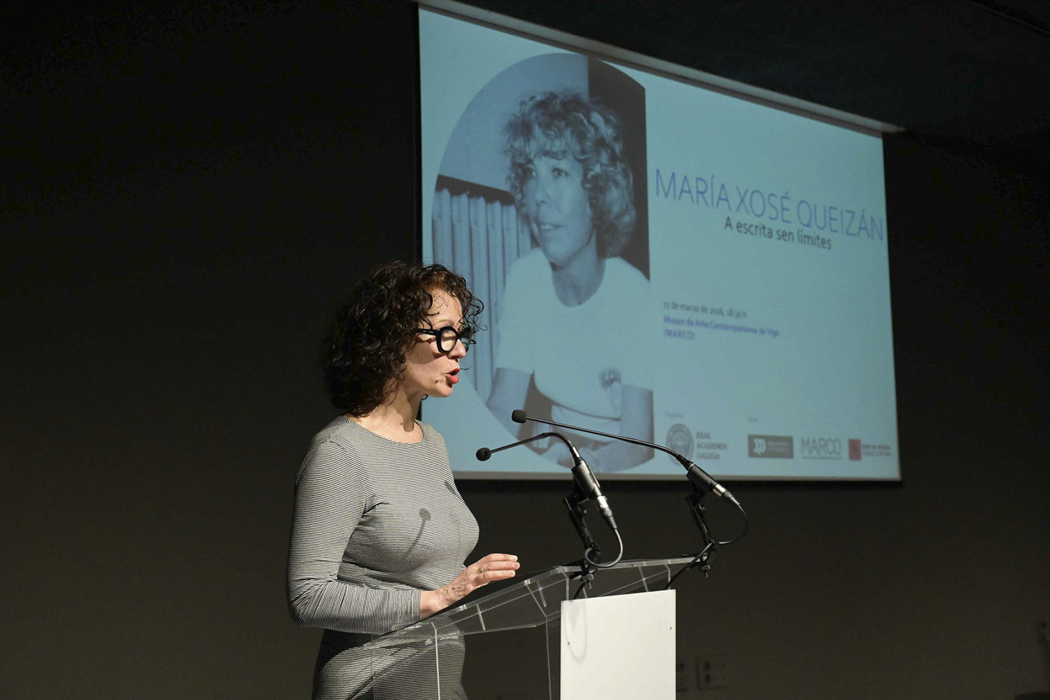 O Museo de Arte Contemporánea de Vigo (MARCO), a cidade da homenaxeada, acolleu a celebración organizada pola RAG co apoio do Concello de Vigo e da Deputación de Pontevedra. O público ateigou o auditorio para se sumar a unha festa da palabra no que trece voces literarias de distintas xeracións recitaron versos de María Xosé Queizán, recollidos na plaquette que lle deu título ao encontro, María Xosé Queizán. A escrita sen límites, dispoñible na sección de publicacións.