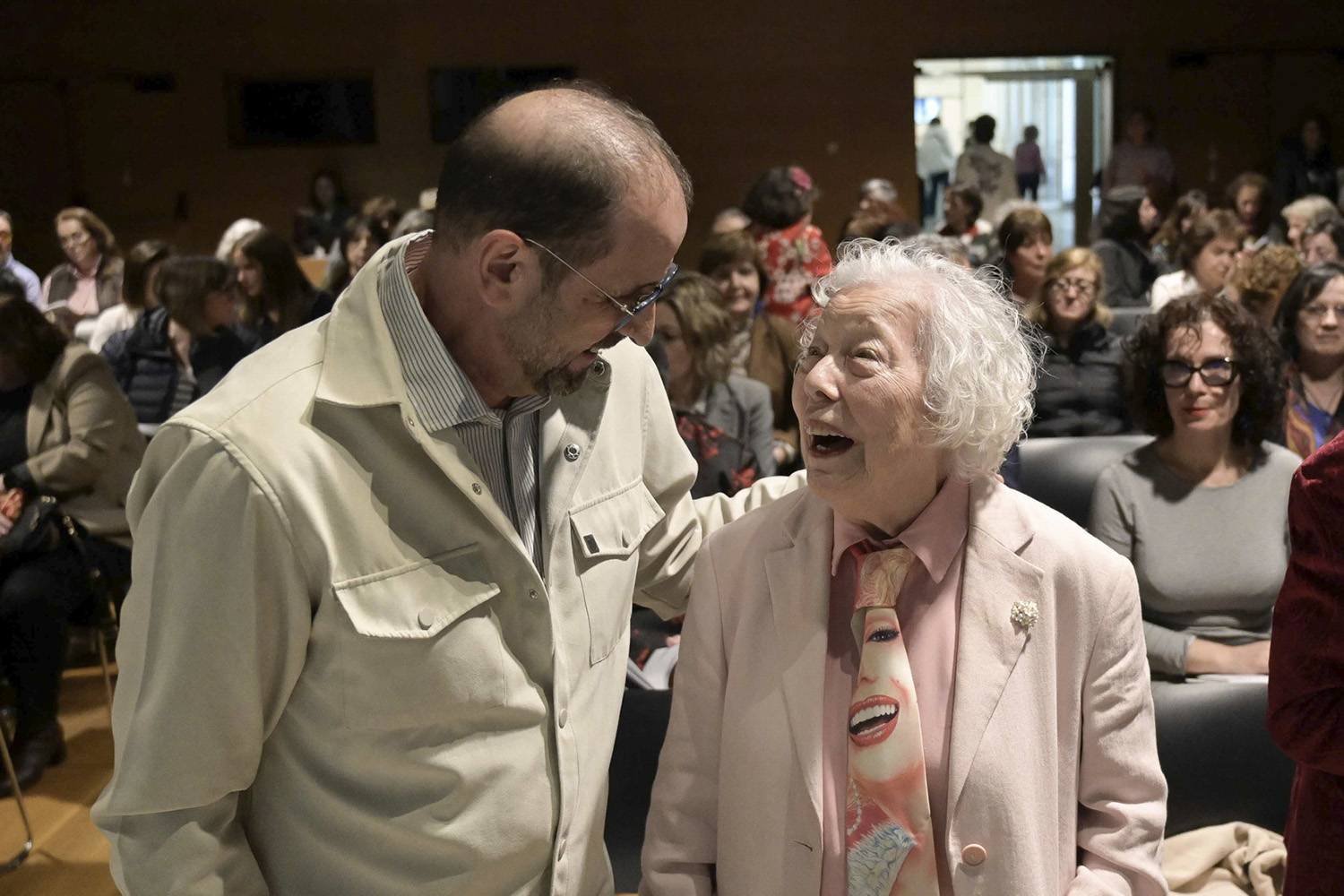 O presidente da Academia, Henrique Monteagudo, con María Xosé Queizán.