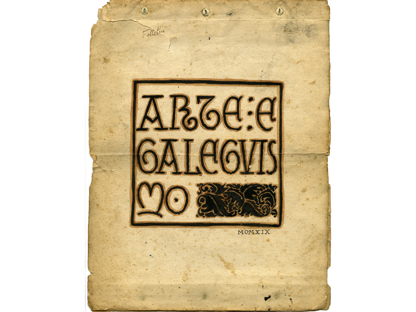 Na imaxe podemos observar este tipo de letra sendo empregado na cuberta da súa conferencia Arte e Galeguismo, o texto orixinal da cal se conserva no Arquivo da Real Academia Galega.