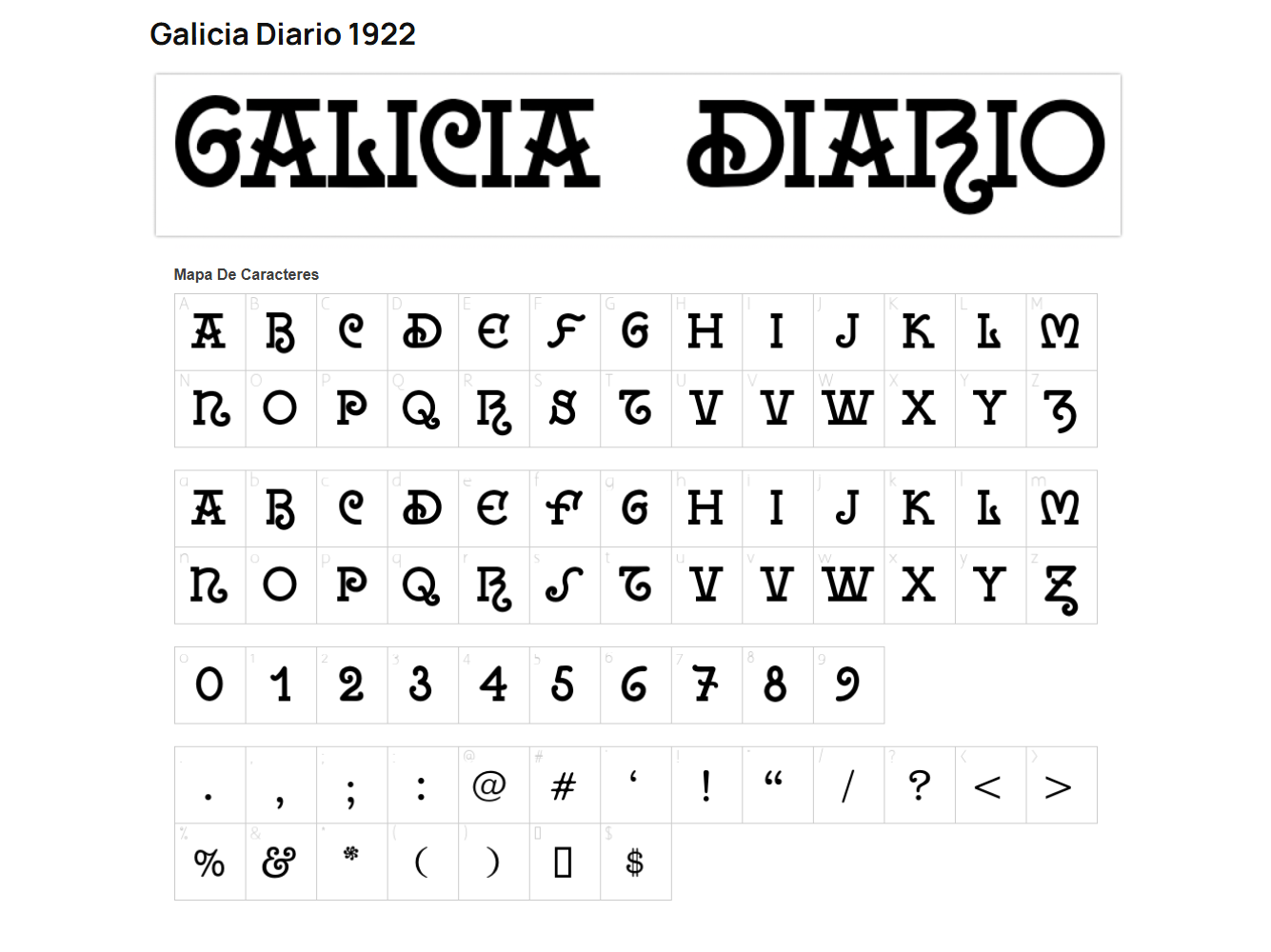 Na fotografía podemos ver a fonte chamada Galicia Diario 1922, de Alberto Varela Ferreiro, que está baseada na tipografía creada por Castelao para a cabeceira do histórico xornal Galicia que se publicou en Vigo desde xullo do 1922 a setembro de 1926.