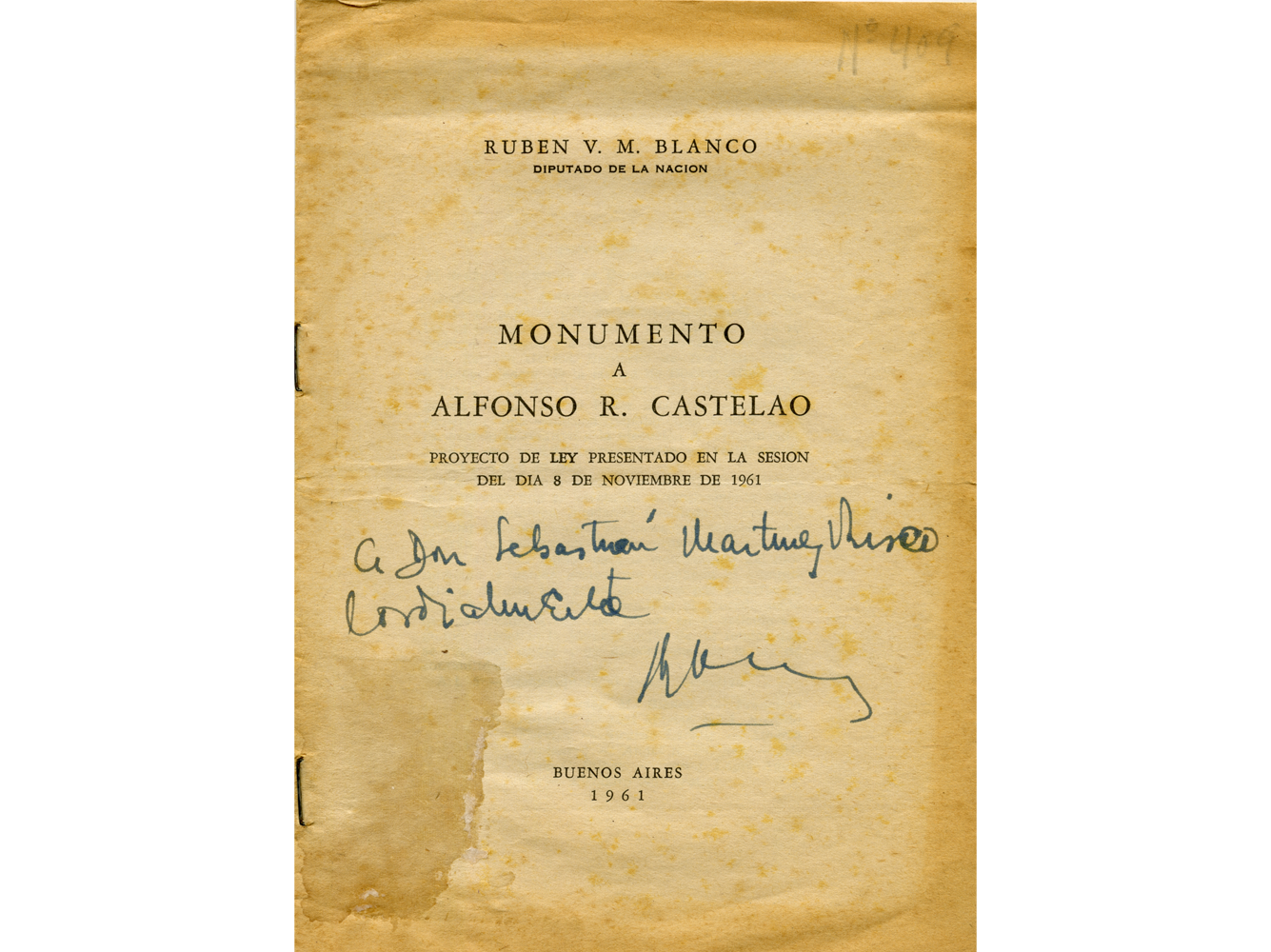 Monumento a Alfonso R. Castelao. Proyecto de ley presentado en la sesión del día 8 de noviembre de 1961 / Rubén V. M. Blanco (1961)