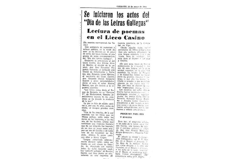 Fonte: El Pueblo Gallego (Vigo), n.º 14236, 15/V/1964