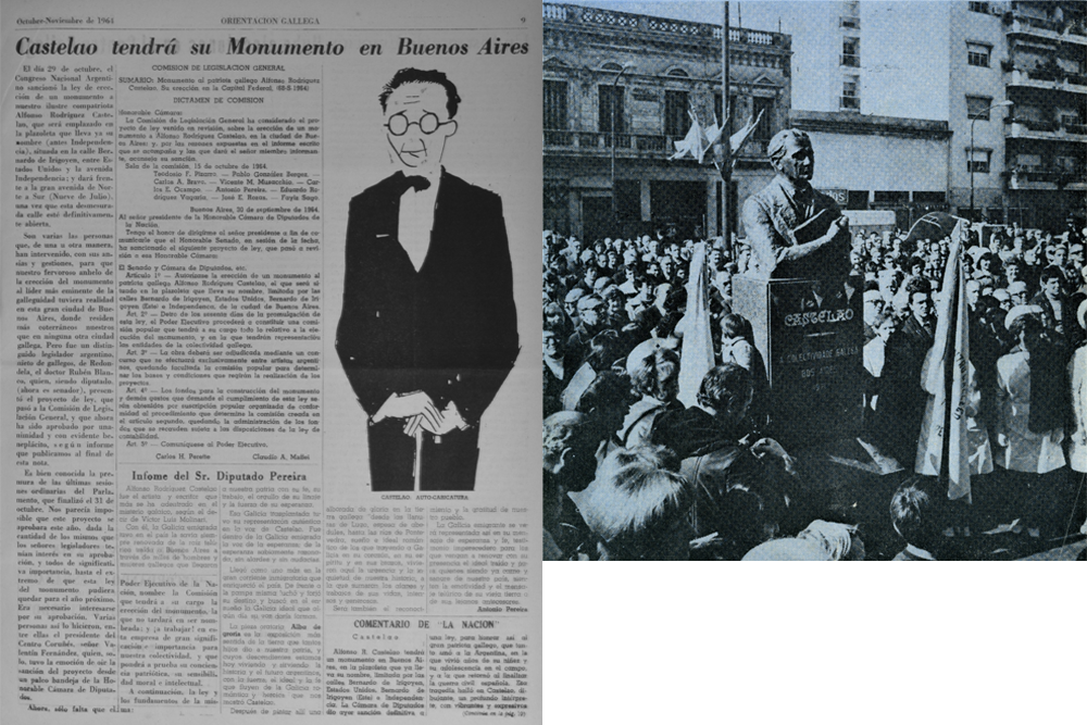 Xa case finalizado o ano, en outubro de 1964, o Congreso e o Senado de Argentina aprobaron un proxecto de lei coa proposta de erixir en Buenos Aires un monumento a Castelao nunha praza da cidade que xa levaba o seu nome dende 1960. A iniciativa a prol do monumento comezara en 1961 da man de varios políticos arxentinos de ascendencia galega, principalmente Rubén Blanco, un neto de galegos de Redondela. A Real Academia Galega, coñecedora desa iniciativa, decidira en 1962 enviarlle unha carta de agradecemento ao deputado Blanco “por su iniciativa de que sea erigido en Buenos Aires un monumento a nuestro esclarecido compañero Castelao”. Con todo, a pesar de ser aprobada en 1964, a instalación dese monumento na praza bonaerense non foi unha realidade ata 1977.