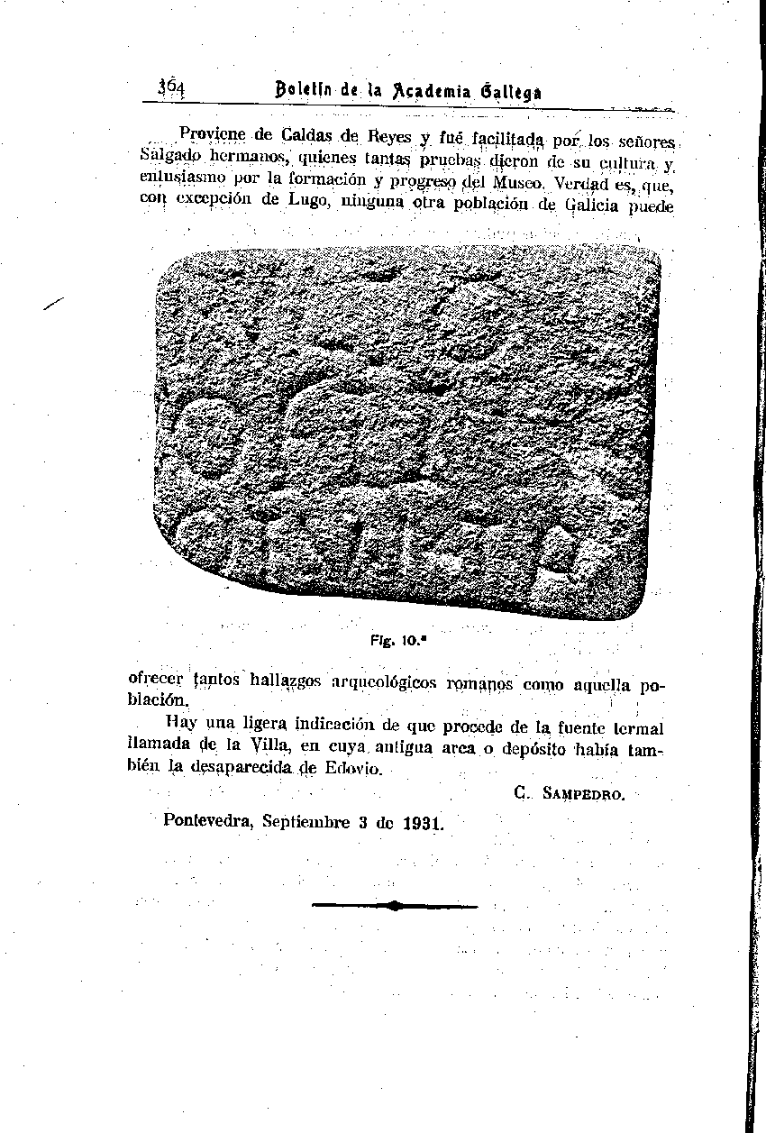 Proviene de Caldas de Reyes y fu?. fac 14 da por' los senores hermanos, quienes tantas pruebas d}eron de su ultura. y