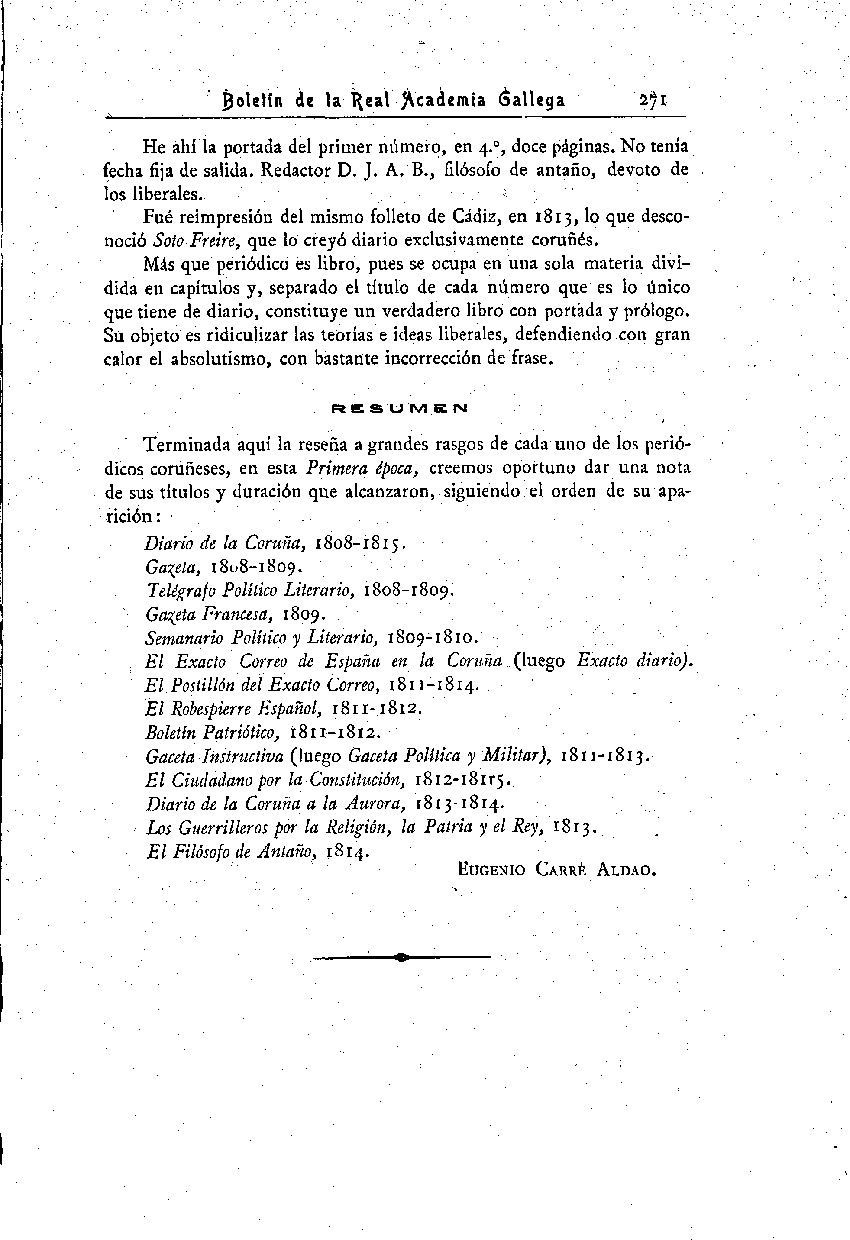 dicos coru?eses, en esta Primera ?poca, creemos oportuno dar una nota