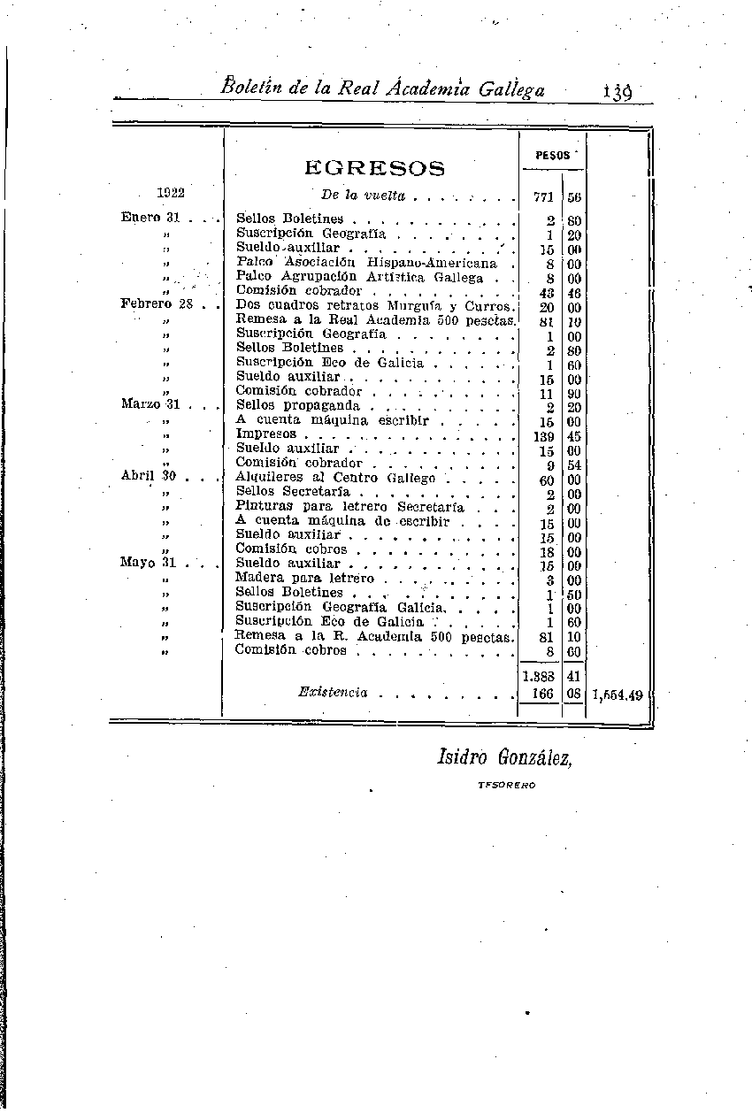 Abril 30 . . Alquileres al Centro Gallego 60 00
