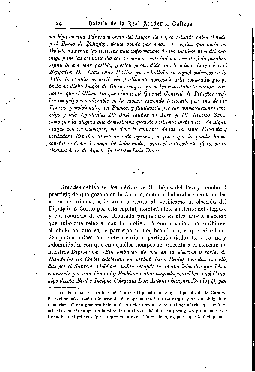 (i) Este ilustre sacerdote fu? el primer Diputado que eligi? el pueblo de la Coru?a.
