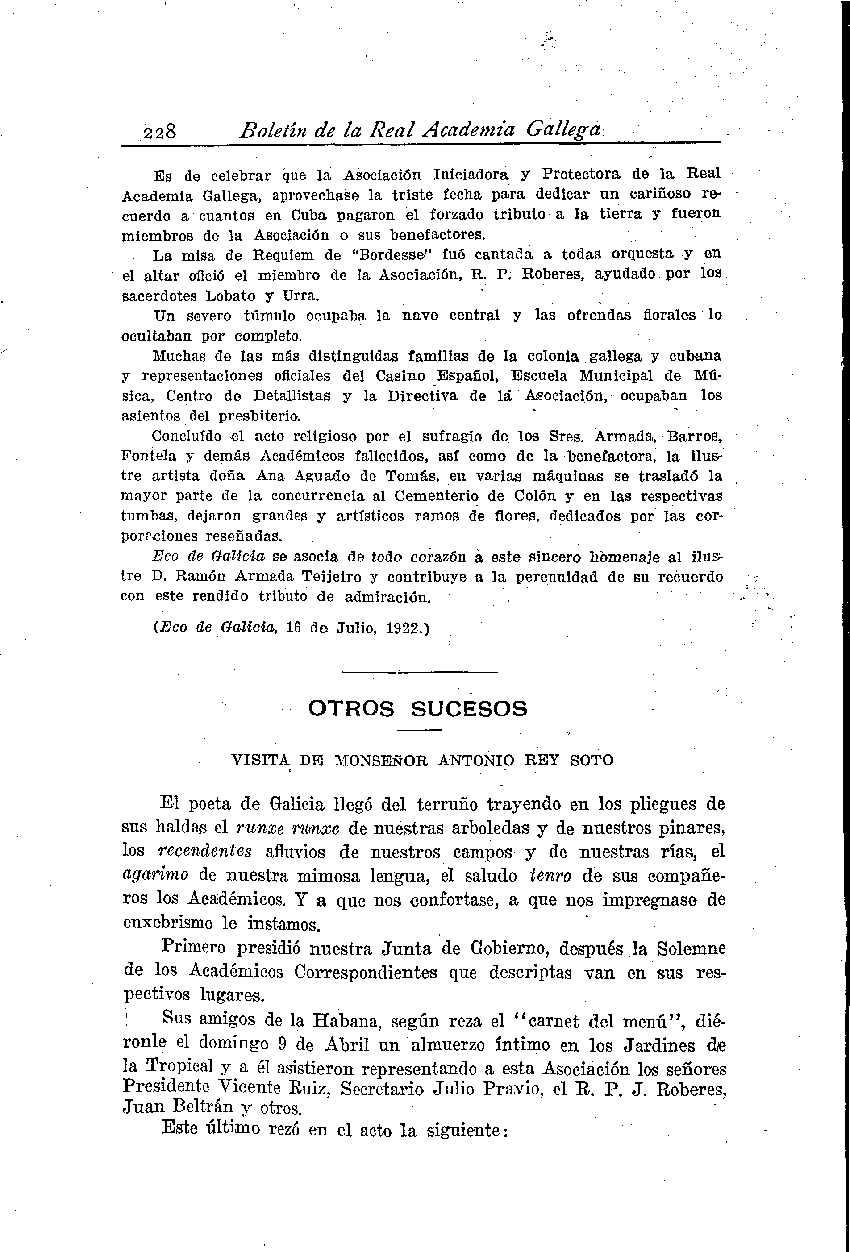 Sección Oficial. Asociación Iniciadora y Protectora de la Real Academia Gallega en la Habana. Otros actos de la Asociación.
