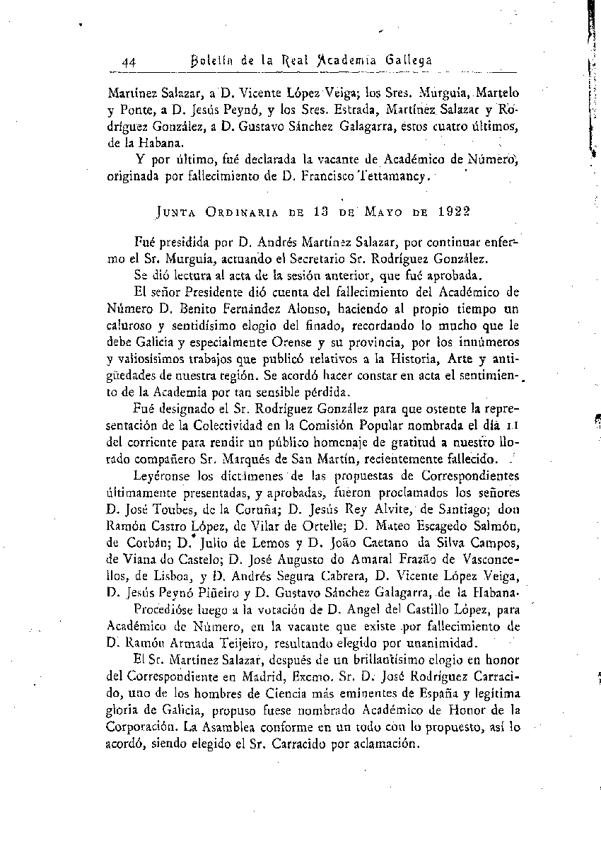 Sección Oficial. Junta Ordinaria de 13 de Mayo de 1922.