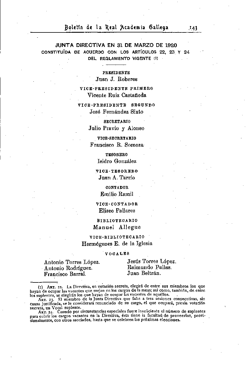 JUNTA DIRECTIVA EN 31 DE MARZO DE 1920