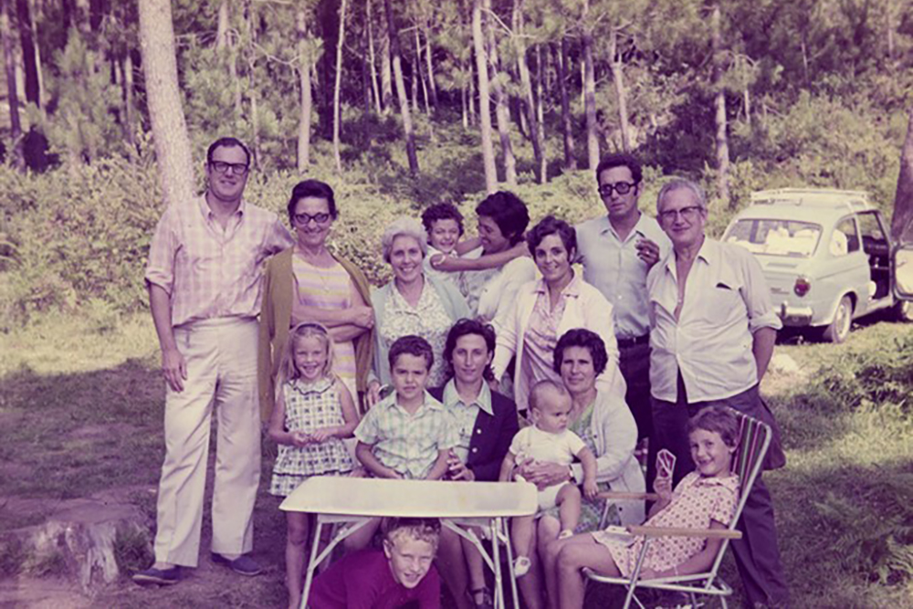 Begoña Caamaño de nena, sentada á dereita, cooa súa familia e amizades.
