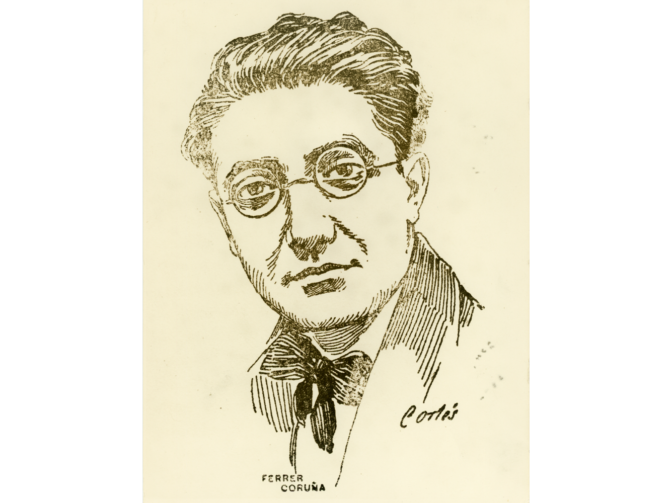 En 1917, o académico correspondente e galeguista Fernando Cortés fai este retrato de Castelao. Fernando Cortés foi discípulo de Isidoro Brocos e o responsable, entre outras obras, dos bustos de Pondal, Murguía e Pardo Bazán que se conservan na Academia. Foi tamén durante a maior parte da súa carreira o redactor artístico de La Voz de Galicia, debuxando temas de actualidade. Cortés asistiu ao ingreso de Castelao na Academia en 1934, tal e como testemuña a fotografía do acto conservada no Arquivo da Academia.